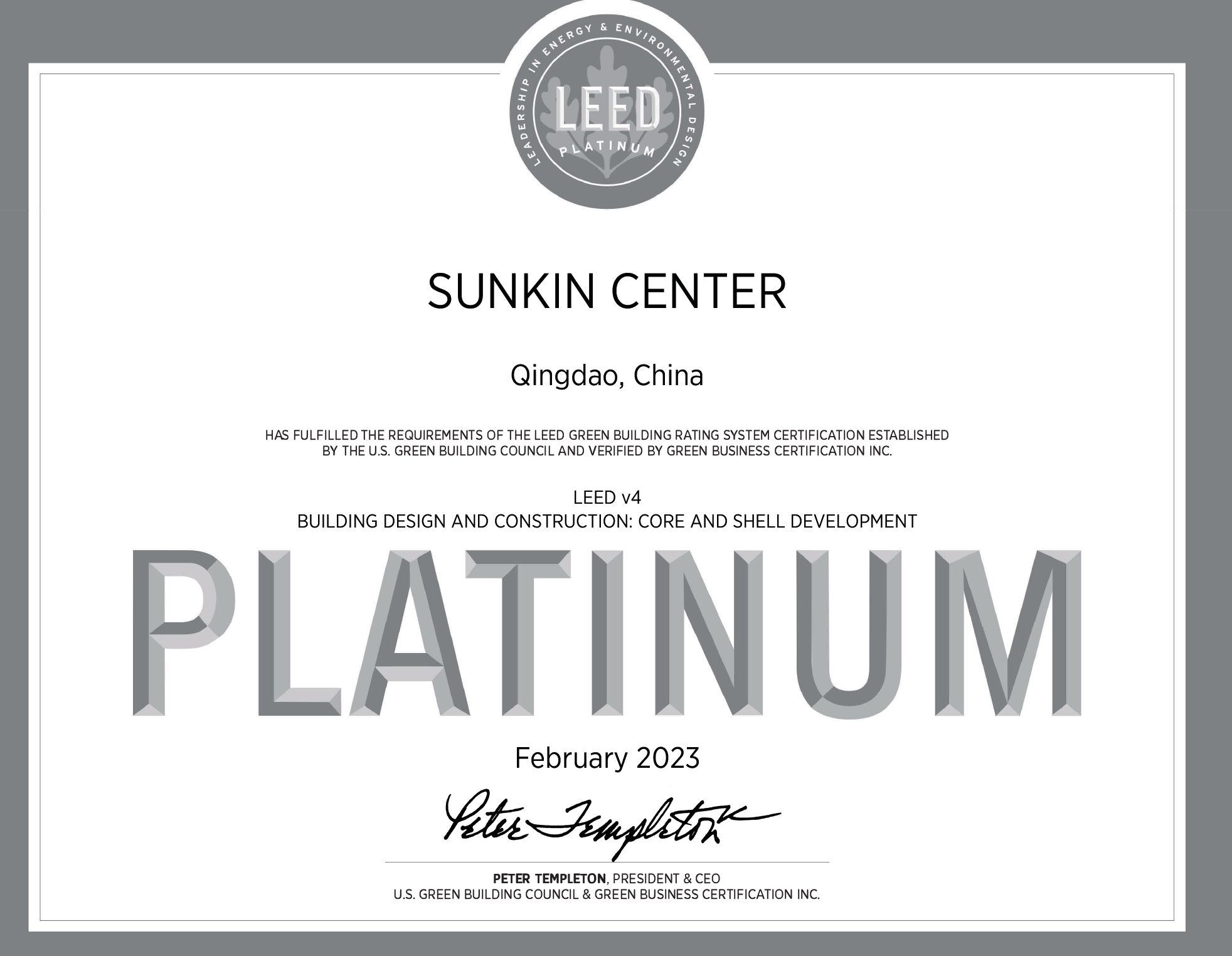 活動公告:鑫江中心榮獲LEED鉑金級認證